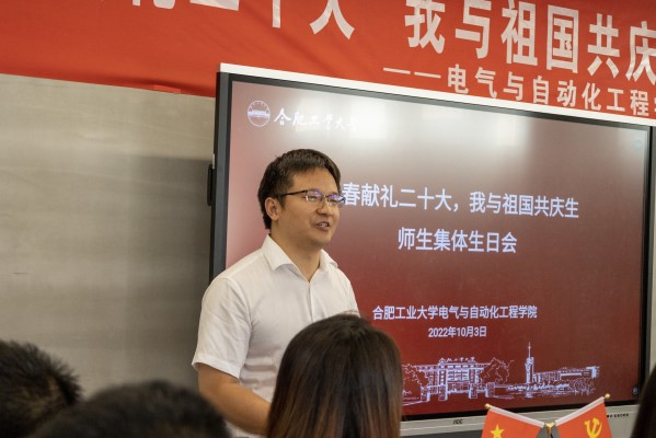 向念文在致辞中表示在国庆节假期、校庆日即将到来之际,师生齐聚一起过集体生日,为二十大献礼、为祖国祝福、为母校喝彩、为同学庆生,就是让大家感受到国家的繁荣昌盛、学校的蓬勃发展、学院的温暖温馨,铭记峥嵘岁月、扬帆砥砺前行。他向同学们介绍了学院的发展历程、学科特色、科研成就,强调了一代代工大电气人工业报国,主动服务国家和社会的精神激励着年轻学子不辱使命、不负韶华,绘制青春最靓丽的画卷,并勉励全体年轻学子以提升能力为学习目标,主动培养独立做事能力、创新能力、表达能力和领导力,争做德智体美劳全面发展的新时代青年学子。