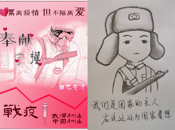 征集活动以个人或者团体形式,收到了电影配音、诗朗诵、征文、海报、漫画、视频等多种形式的作品。这些作品从不同视角,记录了战“疫”中涌现出来的感人瞬间,展现了人间的温暖与大爱,诠释了新时代的雷锋精神。智电2017-1班梁忆琳同学的海报作品《坚定信念,共克时艰—抗疫英雄群像》描绘了奋战在抗疫一线的医生、护士、军人和基建工人的点滴故事,他们无私奉献、担当尽责的精神展现了新时代雷锋精神的风采,给了我们打赢这场疫情防控阻击战的信心。电气2019-6班郑奥伟同学的视频作品《白衣逆行,致敬身边的雷锋》通过对白衣天使的颂扬表现雷锋精神在当今社会的传承,并向奋战在抗击疫情一线的人们致敬。