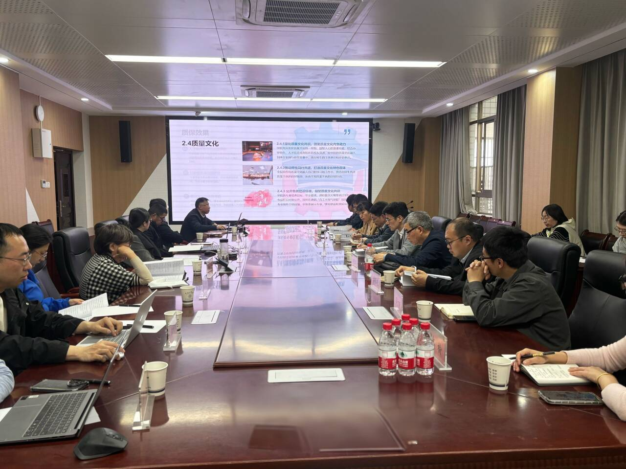 、评估小组组建、工作方案制定等多方面作了本科教育教学自评工作开展情况汇报。围绕党的领导、质量保障能力等方面总结学院自评结果,并重点阐述规范教学过程管理、提升学院智慧化管理等相关举措,强调持续推进教育教学综合改革。随后,参会人员围绕设立电气自动化创新班、论文发表激励制度、教学经费支出等工作细节进行了交流,并就如何进一步改进教育教学工作进行了深入的讨论。
