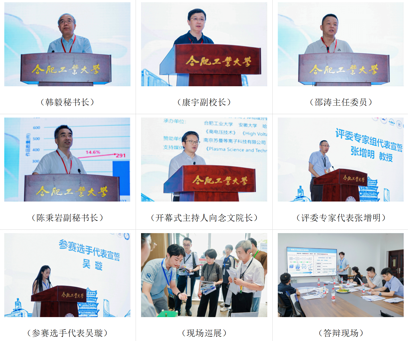 副校长康宇,中国电工技术学会等离子体专委会主任邵涛,全国大学生高电压与等离子体科技创新竞赛负责人陈秉岩分别致辞,出席开幕式的领导和嘉宾还有哈尔滨工业大学电气工程及自动化学院党委书记聂秋月、中国科学技术大学物理学院实验室主任张增明、南京苏曼等离子科技有限公司万京林、安徽大学材料科学与工程学院院长遇鑫遥。