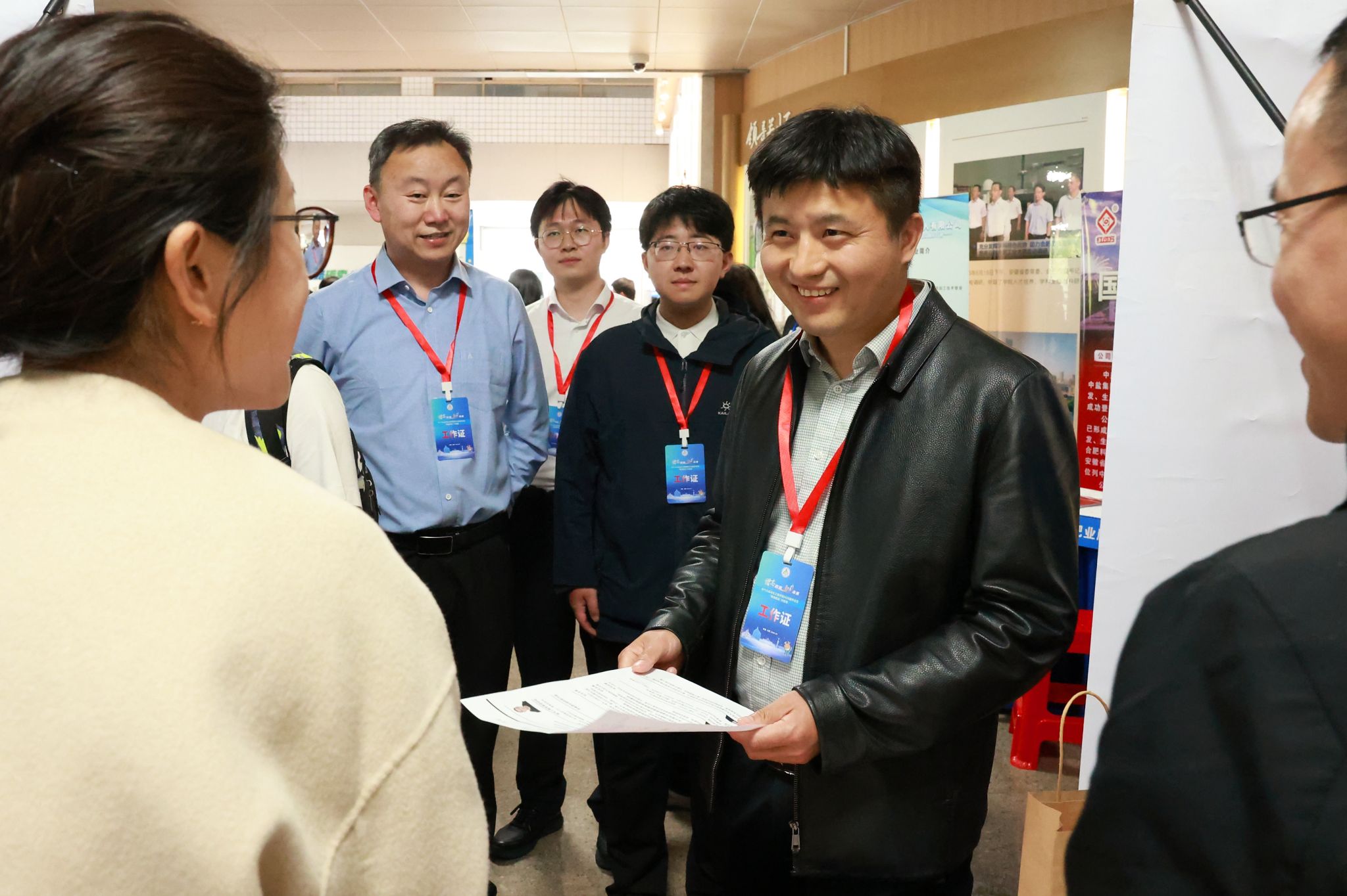 学院负责同志前往现场,同参会代表依次交流,介绍学院事业发展与人才培养成效,并对企业招贤纳才力度表示感谢。院领导与在场同学亲切交谈,鼓励电气学子保持信心,积极做好职业规划,以八十载工业报国使命为引领,将个人成长成才融入祖国发展大局。