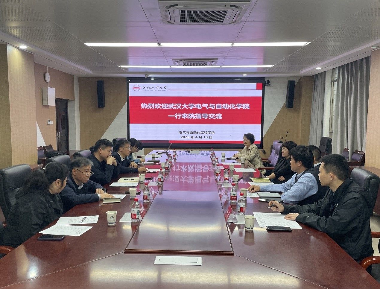 冯航对武汉大学电气与自动化学院一行的到访表示热烈欢迎。他表示,两院均以电机学科立院,学科渊源一脉相承,深厚的校友情谊与人才纽带为双方深化合作奠定了坚实基础。两院均肩负着能源报国、为党育人的重要使命,希望以此次调研交流为契机,进一步深化务实合作,携手为电气领域的高质量发展和国家能源战略实施贡献力量。