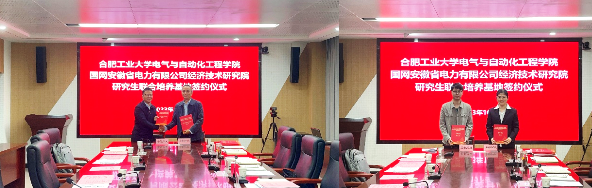 —国网安徽省电力有限公司经济技术研究院研究生联合培养基地协议书》、企业联培导师与学生代表签订研究生联培导师带徒合同书,标志双方合作迈入了新的阶段。