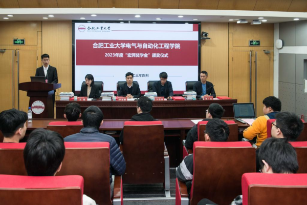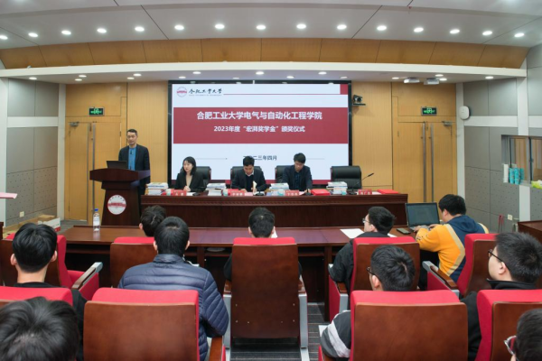 2023年度“宏湃奖学金”获得者的决定》。“宏湃奖学金”获奖学生代表程乐在发言中代表全体获奖学生向宏湃信息技术有限公司以及辛勤培育学生的母校和老师致以诚挚的敬意和衷心的感谢。他表示作为新时代的电气人,要将“工业报国”情怀深深植根于心,肩负起当代大学生的责任,矢志不渝坚持理想,不负母校培养,为国家、社会和电力行业的发展贡献工大学子的青春力量。