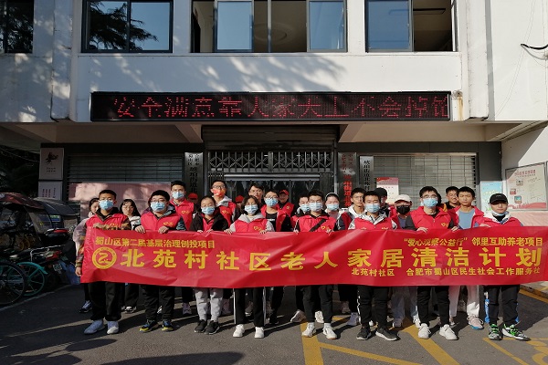 阳光社20名志愿者在北苑村社区开展“爱心观察公益行”邻里互助养老系列志愿服务活动之老人家居清洁计划,本着“关爱老人,奉献爱心”的初心,帮助社区内高龄老人进行房屋清洁。
