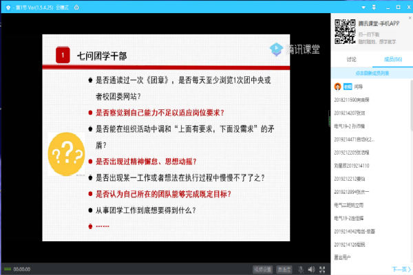 分团校第六期青马班全体成员开展第二次题为“新时期团学干部面临的问题与思考”的主题团课活动。