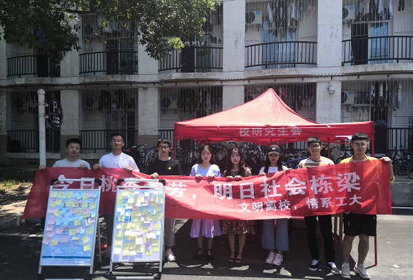 、管理学院、材料科学与工程学院、土木与水利工程学院四院研究生会联合举办的“文明离校,情系工大”活动在新禧公寓通道口圆满落幕。