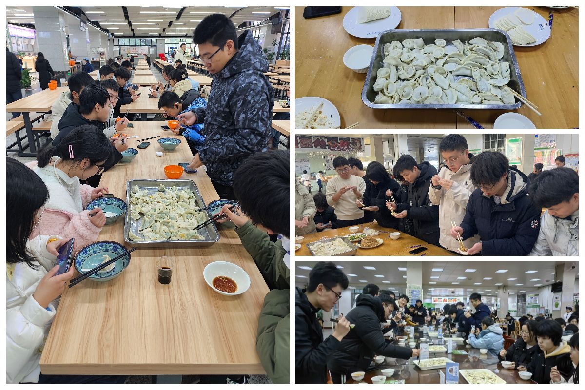 在总务部饮食服务中心的精心策划和指导下,活动有序开展。活动中,学院相关负责人首先向同学们介绍了冬至吃饺子的习俗和文化内涵,阐述了冬至“天时人事日相催,冬至阳生春又来”的时令变化,鼓励全体同学在传统节气中唤醒文化血脉的力量。随后在工作人员的指导下,同学们分工明确、协同合作,不一会儿,一盘盘形状各异、承载着温馨和团圆美好寓意的饺子便铺满操作台。活动现场气氛热闹和谐,欢声笑语不断。一盘盘热气腾腾的饺子出锅后,同学们品尝着自己亲手包的饺子,内心充满成就感和幸福感。
