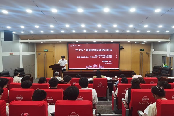 2023年暑期“三下乡”社会实践成果汇报答辩在学术会议中心二楼报告厅举行,学院团委相关老师担任评委,100余名2023级新生参加活动。