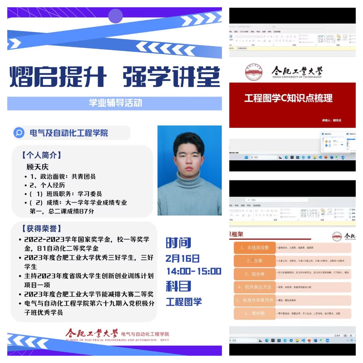 开展“‘熠’启提升,强学讲堂”线上学业辅导活动,学院建立“骨干教师+朋辈讲师”学业导师队伍,各年级调研摸排学生需求,针对《电力电子技术》,《电子技术基础》,《线性代数》,《工程图学》等课程开展学业辅导,帮助学生掌握学习方法,把握重点难点,增添学习动能,树立学业信心,顺利通过考试,学院150余名学生参加活动。