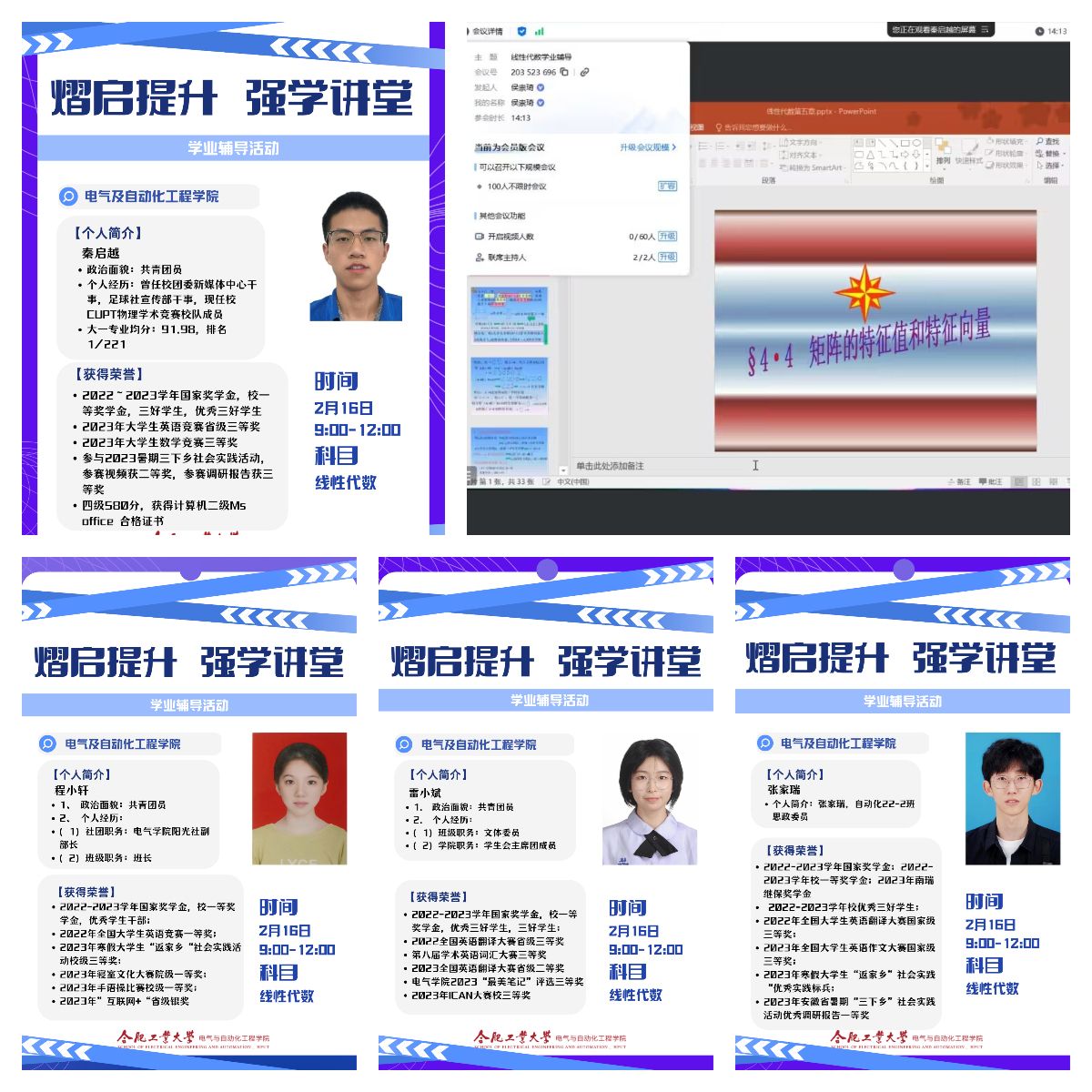 本次“‘熠’启提升,强学讲堂”线上学业辅导活动是学院学业发展辅导中心重要工作内容之一,通过“教师指导+朋辈引领+学习互助”的学业发展辅导模式,在提升学生学业能力的同时明晰未来发展方向,激发学习动能,营造“互帮互助,共同进步”的良好学习氛围。学院将继续发挥学业发展辅导中心的教育引领作用,夯实学业基础、提升学业精度、延展学业宽度,为学生成长发展提供优质平台。