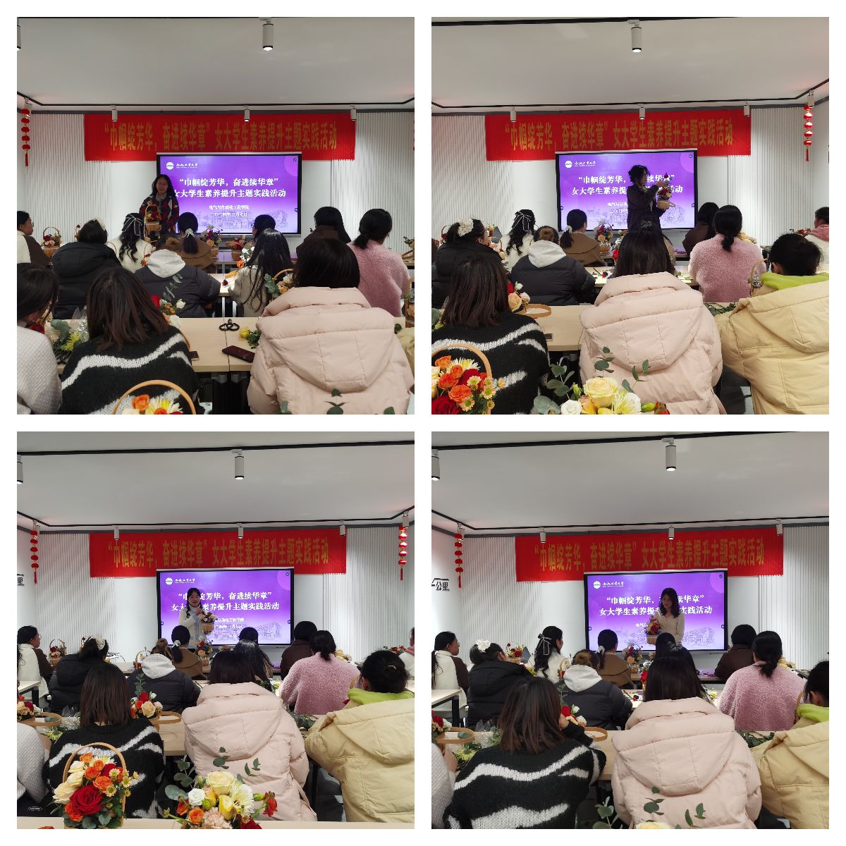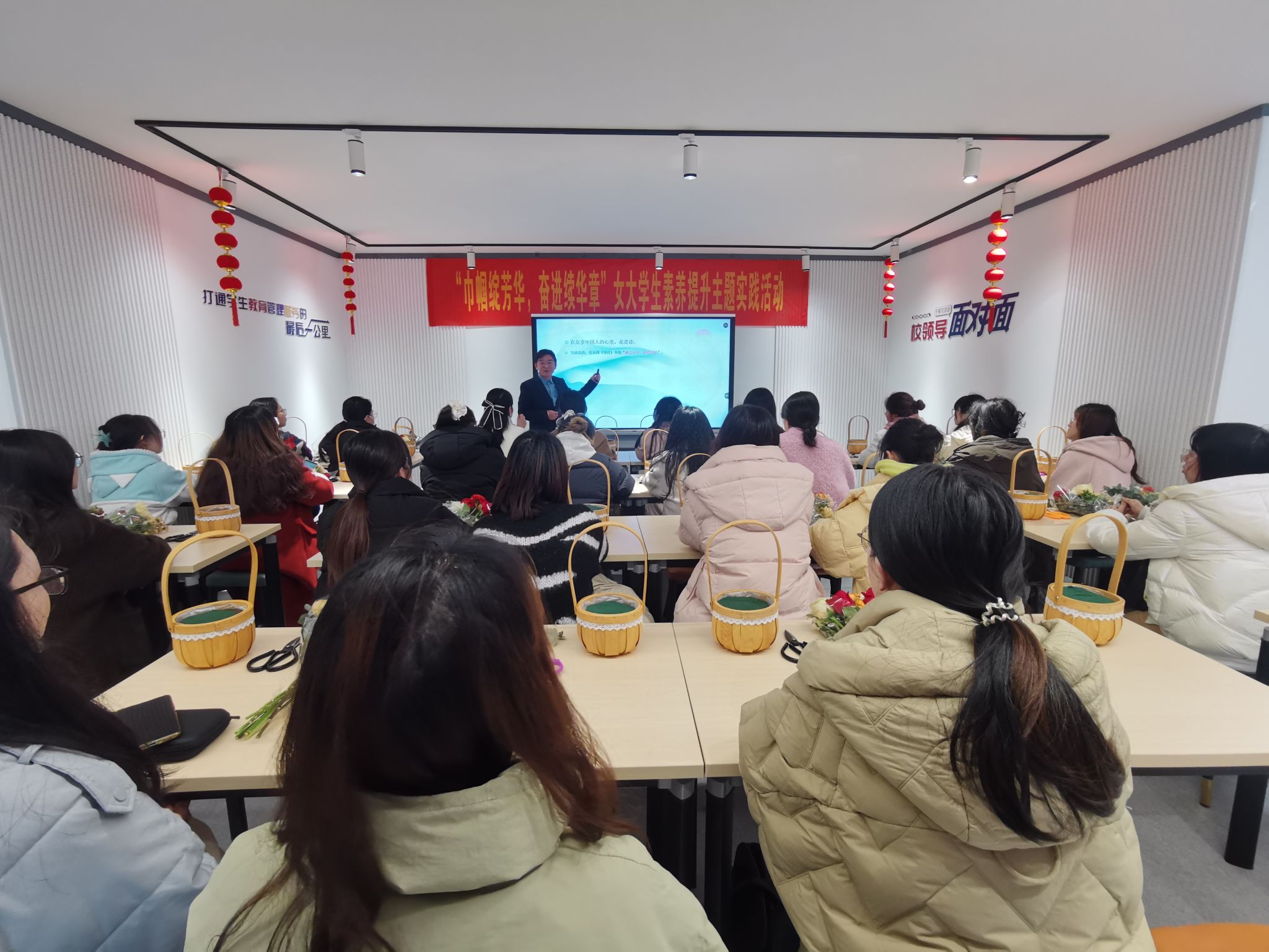 在屯溪路校区七号楼学生社区沙龙空间开展“巾帼绽芳华,奋进续华章”女大学生素养提升主题实践活动,学院党委相关负责人、辅导员代表、30余名各年级女生代表参加活动。