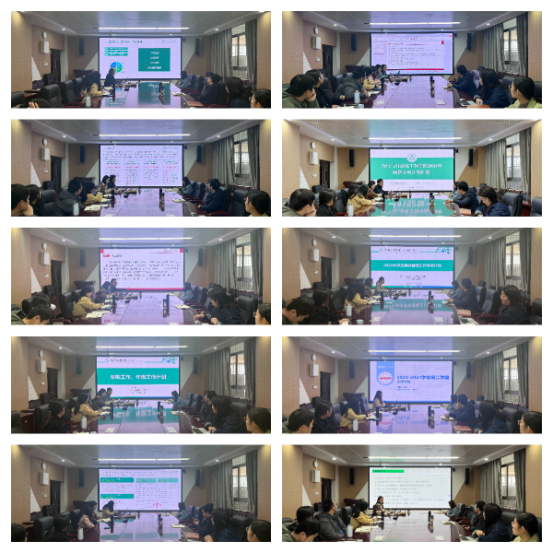 在逸夫楼1009会议室开展2023-2024学年第二学期学生工作重点任务布置会,学院相关负责人和全体辅导员参加会议。