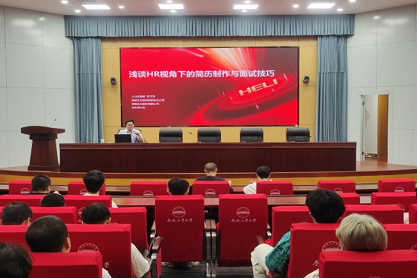 在学术会议中心一楼大报告厅举行“熠志启航,职引未来”就业解析报告会,安徽合力股份有限公司产品研发项目经理、高级研发工程师、2013届校友程清,安徽合力股份有限公司人力资源部招聘经理祝子茂和高级研发工程师、2017届校友杨旭光应邀主讲,与2021级本科生畅谈感悟,共话未来。