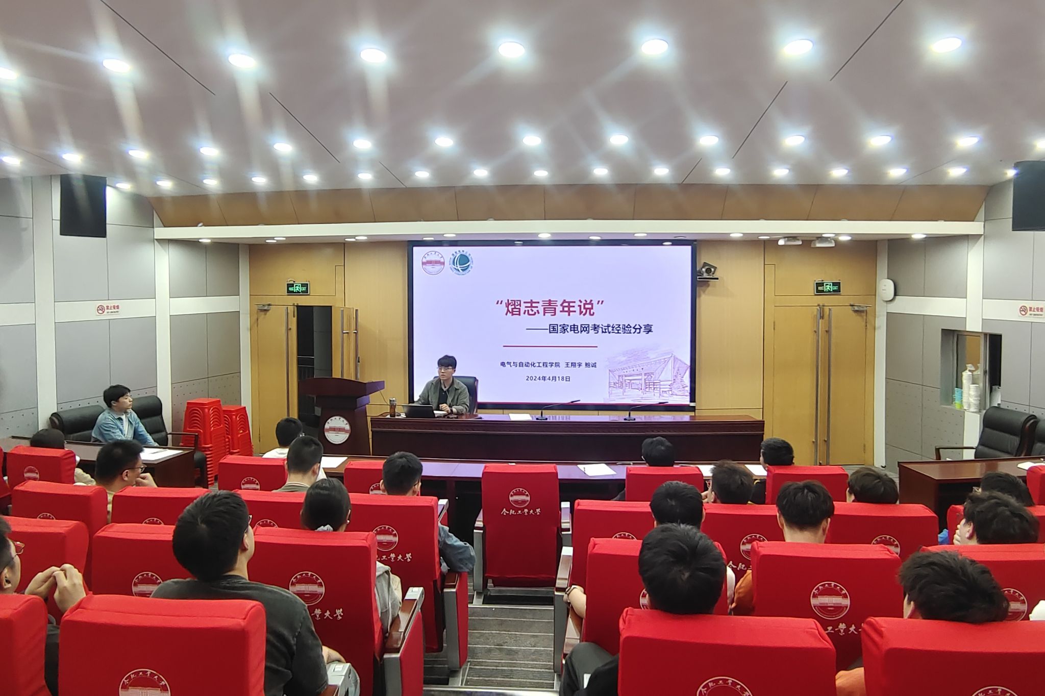 在学术会议中心二楼报告厅举行“熠志青年说”优秀毕业生就业经验分享会(国网专场),即将入职国家电网天津市电力公司的王翔宇、安徽省肥东供电公司的鲍诚应邀主讲,畅谈感悟,共话未来。