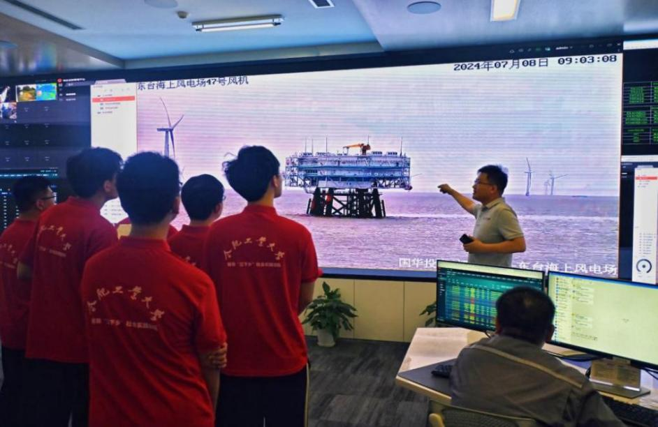 跟随电的脚步,聆听风的声音。7月8日,实践团队前往国华风电有限公司开展调研,围绕能源转型、能源存储等热门领域,工作人员首先以大数据为指引,系统阐述了海上风电项目的建设规模、生产效益、运行管理的长效机制。随后,工作人员以“双碳”话题为中心,生动讲述新能源发展背景下风电生产所带来的“碳收益”如何进一步助力生态格局建设,并强调“技术创新”是达成能源转型的关键一招。风电发展,需听天时,用地利,讲人和,步步为营,久久为功,方能开拓一片天地,绘就能源发展新格局。