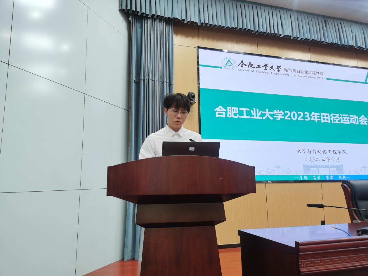活动开始,电气22-3班陈礼成作为运动员代表发言并带领全体运动员宣誓,他对学院的关心支持和工作人员的辛勤付出表示感谢,承诺在备战阶段刻苦训练,严格要求,端正训练态度,掌握训练技巧,科学合理施训,不断提升自身能力,以最佳状态迎接校运会的到来,倡议运动健儿们发扬顽强拼搏的体育精神,为学院荣誉而战,展现电气学子的青春风采!随后,电气23-4班杜昱辉作为志愿者代表发言并宣誓,他表示志愿者们将用实际行动诠释“奉献、友爱、互助、进步”的志愿精神,以高昂的热情和饱满的激情投入运动会志愿服务工作,履职尽责,全力以赴,为运动员创造良好的比赛环境,做好服务保障,助力运动健儿们取得优异的成绩。学院学生工作办公室副主任兼团委副书记左能宣读志愿者与运动员结对名单,要求全体志愿者提升服务热情,做好保障工作,展现志愿者的青春担当,提醒运动员注意训练安全,科学施训,不断提升,在赛场中挥洒汗水、顽强拼搏,展现电气学子的精神风采。最后,学院学生工作办公室主任兼团委书记刘开阳做动员讲话,她对全体运动员提出三点希望,一是希望运动员们赛前认真训练,以饱满的精神状态投入体育竞赛,发挥最佳水平,努力为院争光。二是希望全体工作人员发扬服务奉献精神和团队协作精神,为运动员做好后勤保障工作。三是希望全体运动员在比赛中收获成长,在运动场上一展雄姿,赛出水平,赛出风格,展现电气健儿的青春色彩。