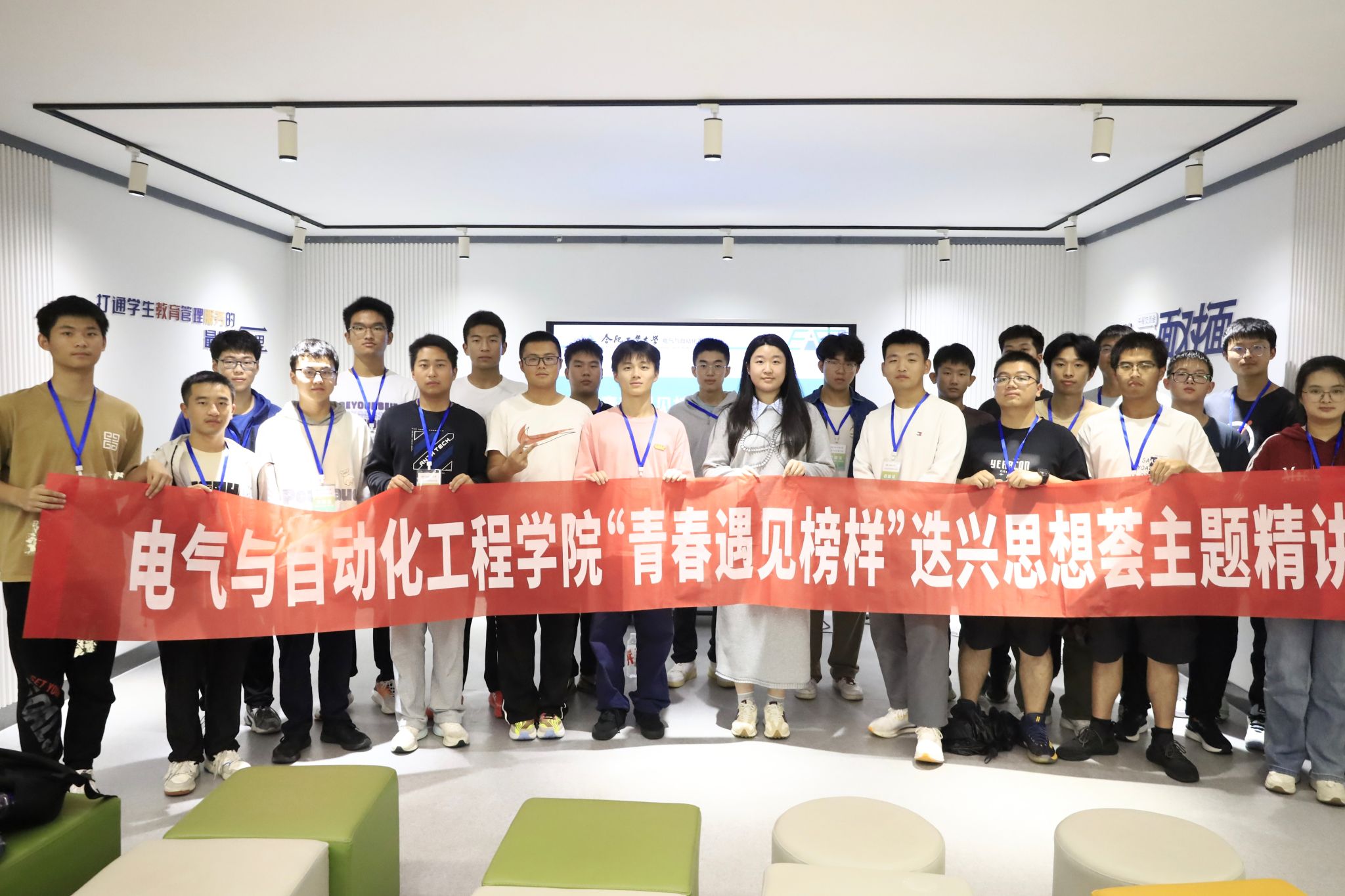 于七号楼沙龙空间开展“青春遇见榜样”迭兴思享荟之“熠言·青程”党员先锋主题精讲活动,2024年校十佳大学生党员王宇清主讲。