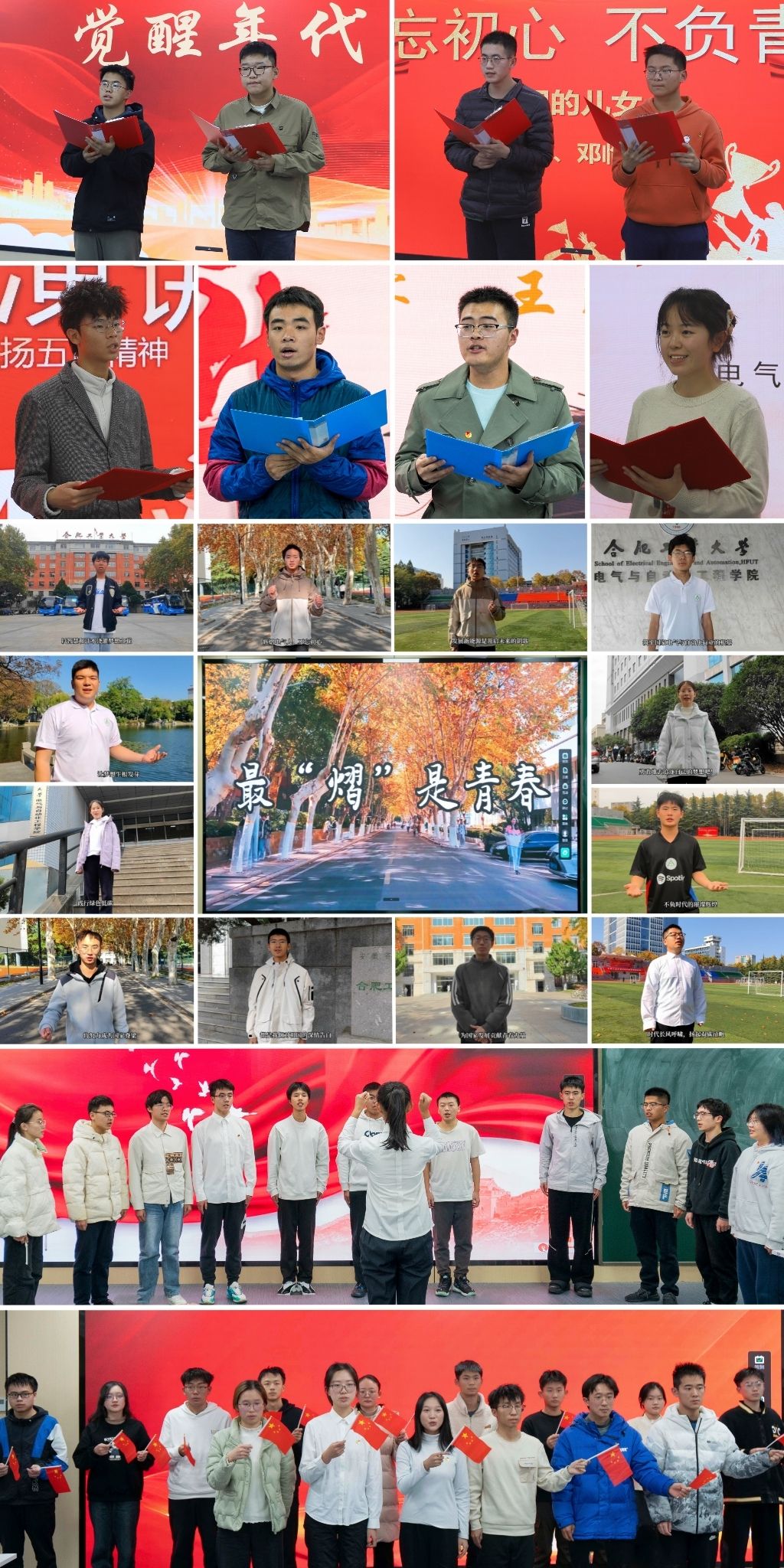 本次主题团课采取“集中备课、分组说课、全员听课”的模式,80余名团校班学员组建为六个课程小组,分别以合唱、演讲朗诵、图文影像等形式,讲述对于青春的理解,彰显青年学子的阳光风貌。“旋律熠课”组以团歌合唱《光荣啊,中国共青团》拉开主题团课的序幕,“演说熠课”组两名同学分别作了题为《当代青年:心怀壮志,闪耀征途》与《践行五四精神,勇担青年使命》的演讲,于慷慨激昂中表达投身青年事业的坚定决心。“影像熠课”组汇报展示了十组摄影作品,通过镜头语言传递了青春风采、青年身影等内容。“诵读熠课”组六名同学在《风华》、《五四的儿女》、《觉醒年代》三篇朗诵作品中,深情流露,对于青年使命的理解愈发明晰。“希冀熠课”组十二名同学共同出镜,围绕青春风采、工业报国、双碳目标等话题,以一支《最“熠”是青春》校园微视频,为青年电气学子献上了诚挚的寄语。二十余名同学组建“文语熠课”组,聚焦“我和祖国共成长”,以篇章的形式分享了青年与党同行的心路与实践历程,书写了当代青年对党的信仰、对青春的理解以及对奋斗精神的诠释。一首合唱《我和我的祖国》,为本次主题团课画上圆满的句号,十五名同学挥舞旗帜,引吭高歌,对于祖国母亲的爱真挚而浓烈。