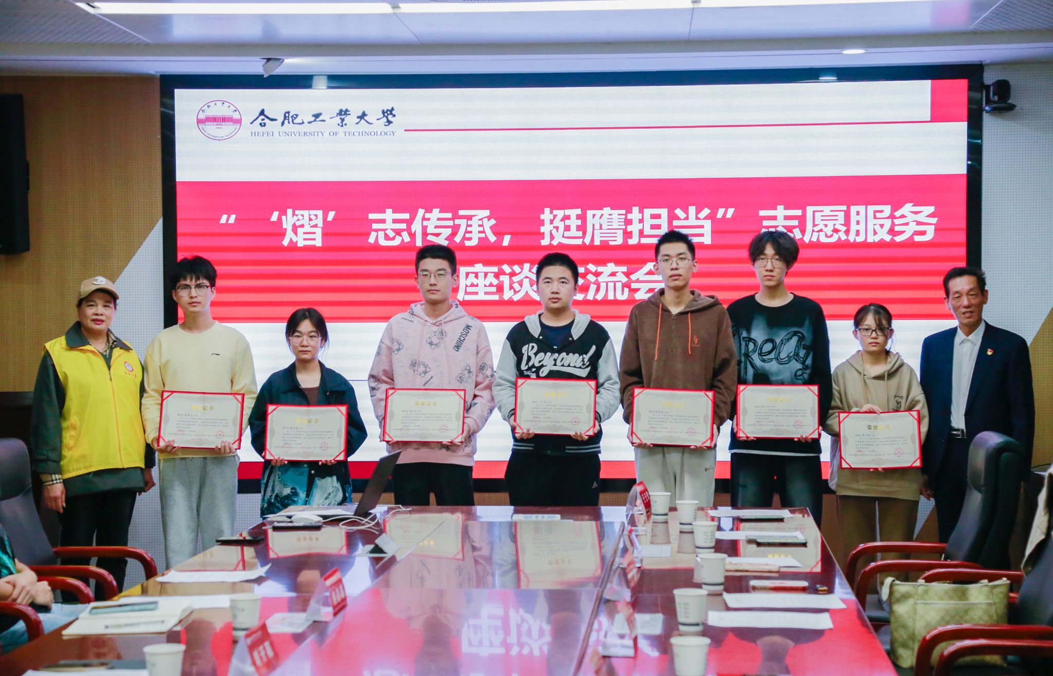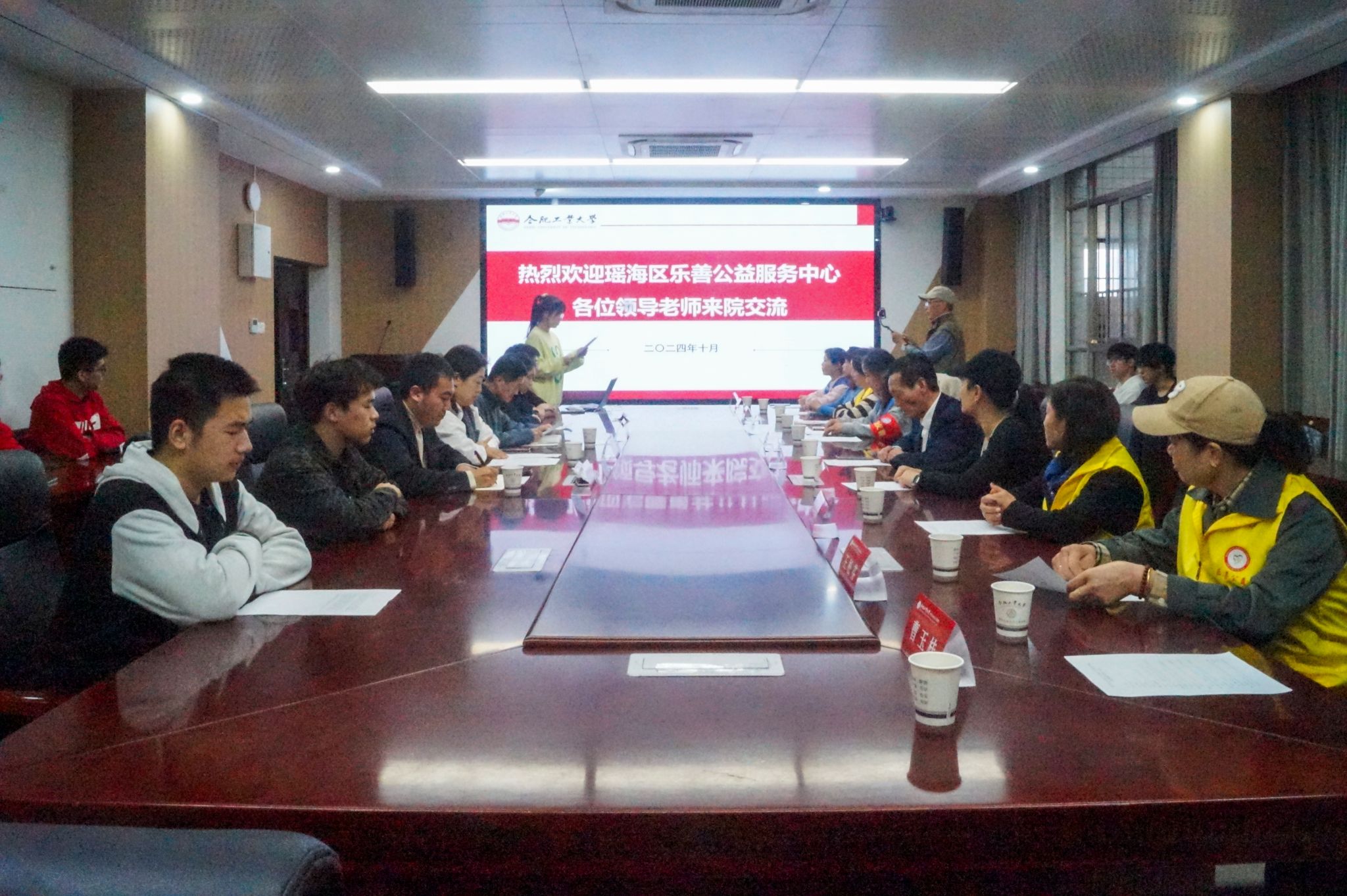 与瑶海区乐善公益服务中心在逸夫楼1009会议室开展“‘熠’志传承,挺膺担当”志愿服务交流会,瑶海区乐善公益服务中心理事长陈余文、乐善公益服务中心志愿者代表、学院学生工作办公室主任兼团委书记刘开阳、学生会秘书长、阳光志愿服务中心指导老师、志愿者代表参加活动。