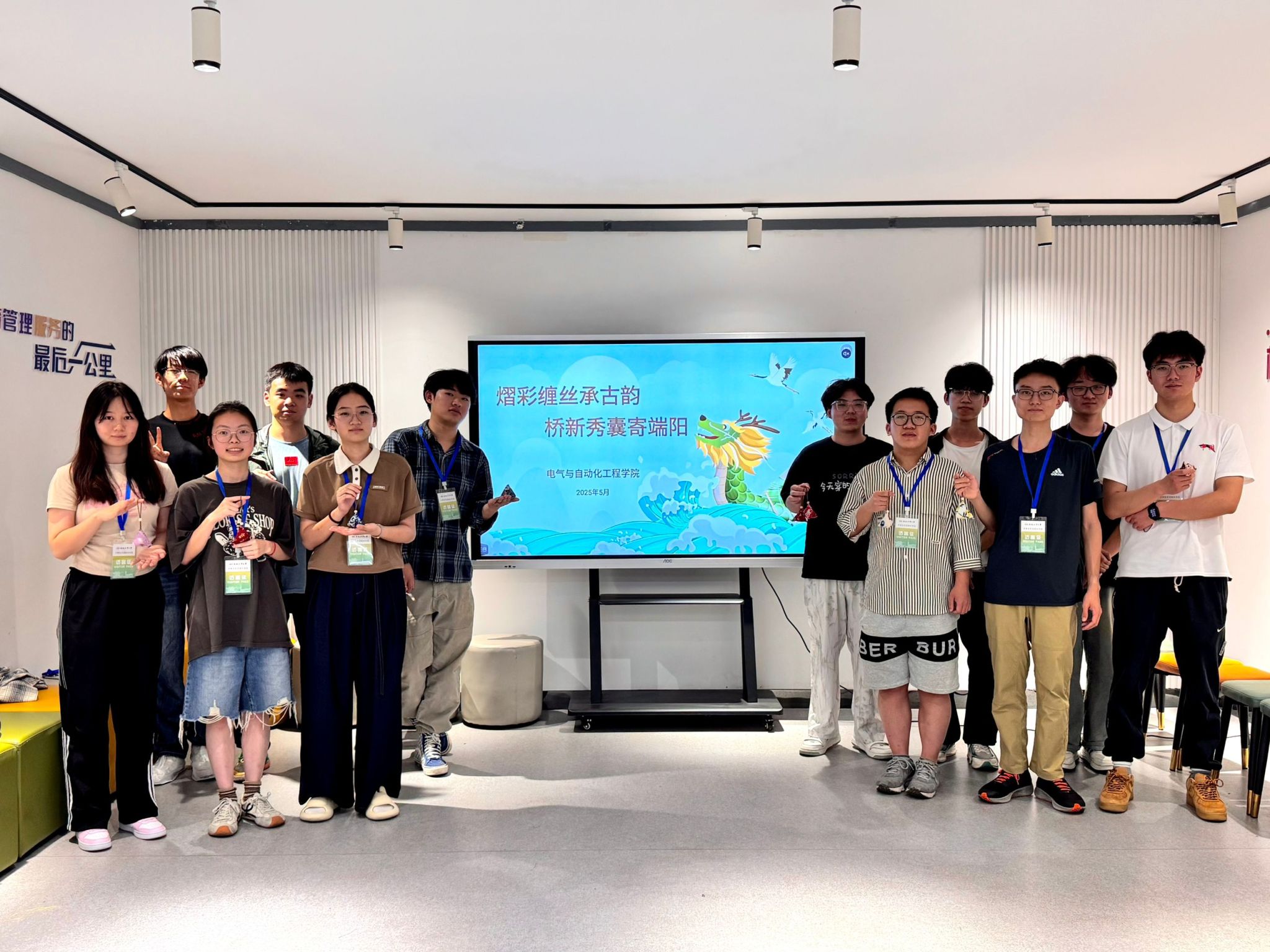 活动分为“学”“悟”“行”三个环节。全体成员聚在一起共同学习了端午节历史起源与深厚内涵,并依次交流了家乡不同的文化习俗,分享了家庭的美好记忆。自动化专业2024级1班朱轩锴在交流中谈到,“我们那的龙舟五彩斑斓,外表十分精美,我的父亲就曾多次作为鼓手帮助队伍拔得头筹!”