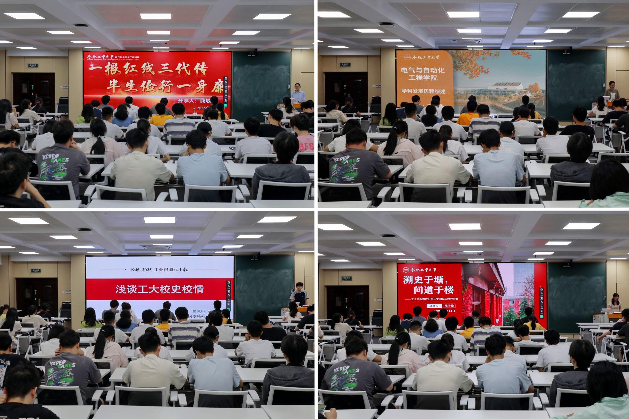 宣讲团成员龚敏以“一根红线三代传,半生俭行一身廉”为题,讲述了李宏塔校友诠释理想信念坚如磐石、优良家风代代相传的人生轨迹。王钰涵介绍了学院与国家能源战略同频共振,在“双碳”征程中勇攀高峰的发展历程。陈子瑜以“溯史于塘,问道于楼”为主题,依次介绍了斛兵塘、主教学楼等代表性校园风物的文化价值。吕志成围绕校史校情两部分,展示了工大建校八十年来在人才培养、科学研究、社会服务、文化传承与创新方面所取得的辉煌成就。参会学生通过交流,表达了将个人奋斗注入时代洪流,让生命在与祖国同频共振中绽放光华的坚定决心。