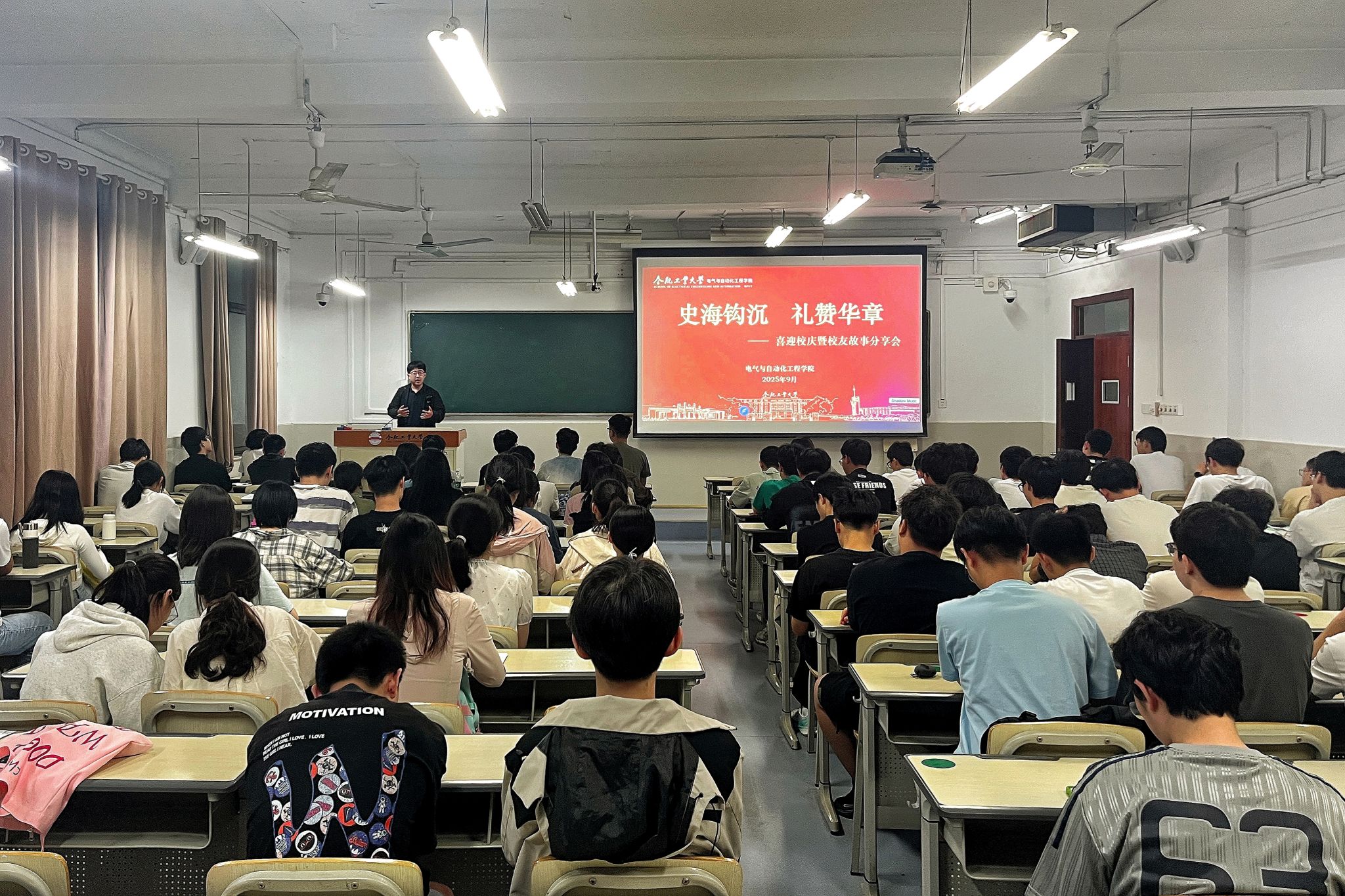 于主教学楼328教室开展“史海钩沉,礼赞华章”喜迎校庆故事分享会,学院相关负责教师、各年级100余名本科生参与活动。