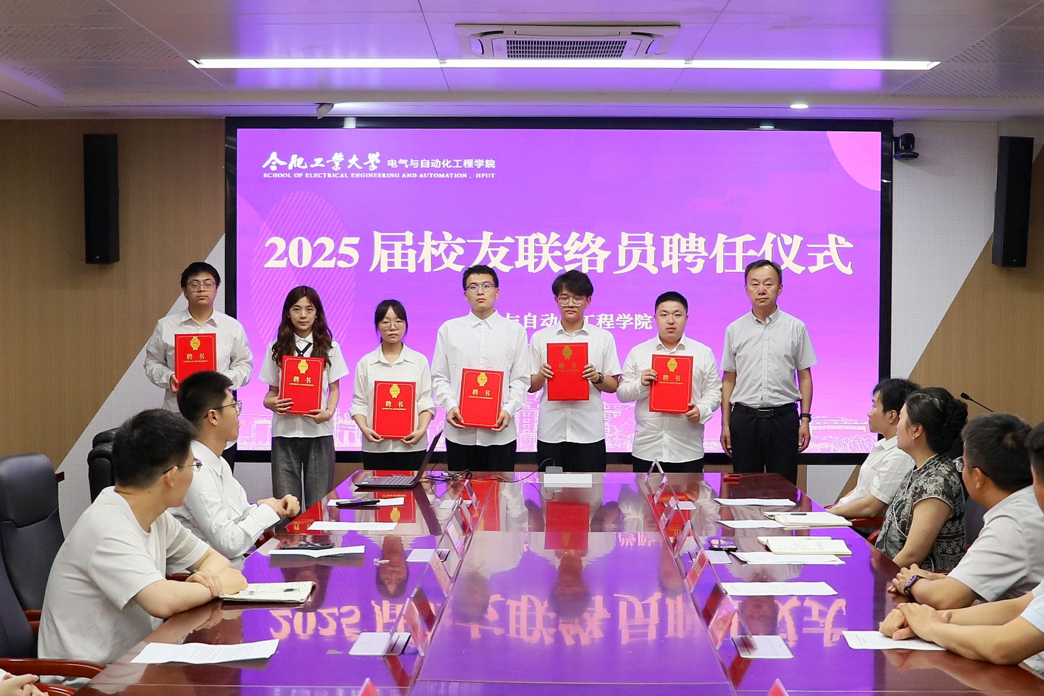 2025届校友联络员的决定》。经研究,本年度学院择优选聘了23名品格过硬、热爱母校、能力突出的校友联络员,实现本硕博班级全覆盖。冯航、向念文、张栋依次为受聘联络员颁发聘书并合影留念。自动化21-1班宗兴泽作为校友联络员代表进行了发言分享。