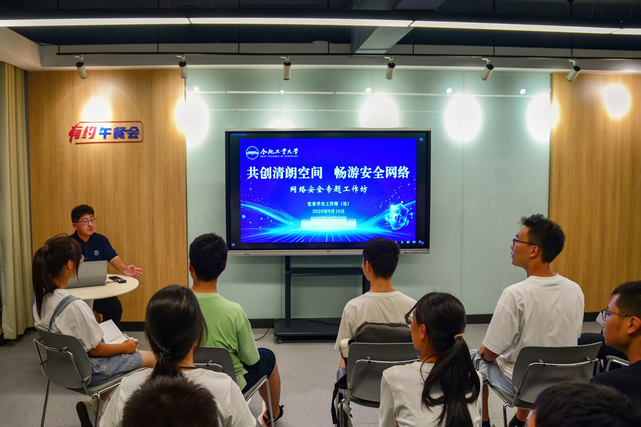 于翡翠湖校区二号公寓学生社区举办“共创清朗空间,畅游安全网络”专题工作坊,学院相关负责教师、新媒体运营中心骨干、各年级本科生代表参与活动。