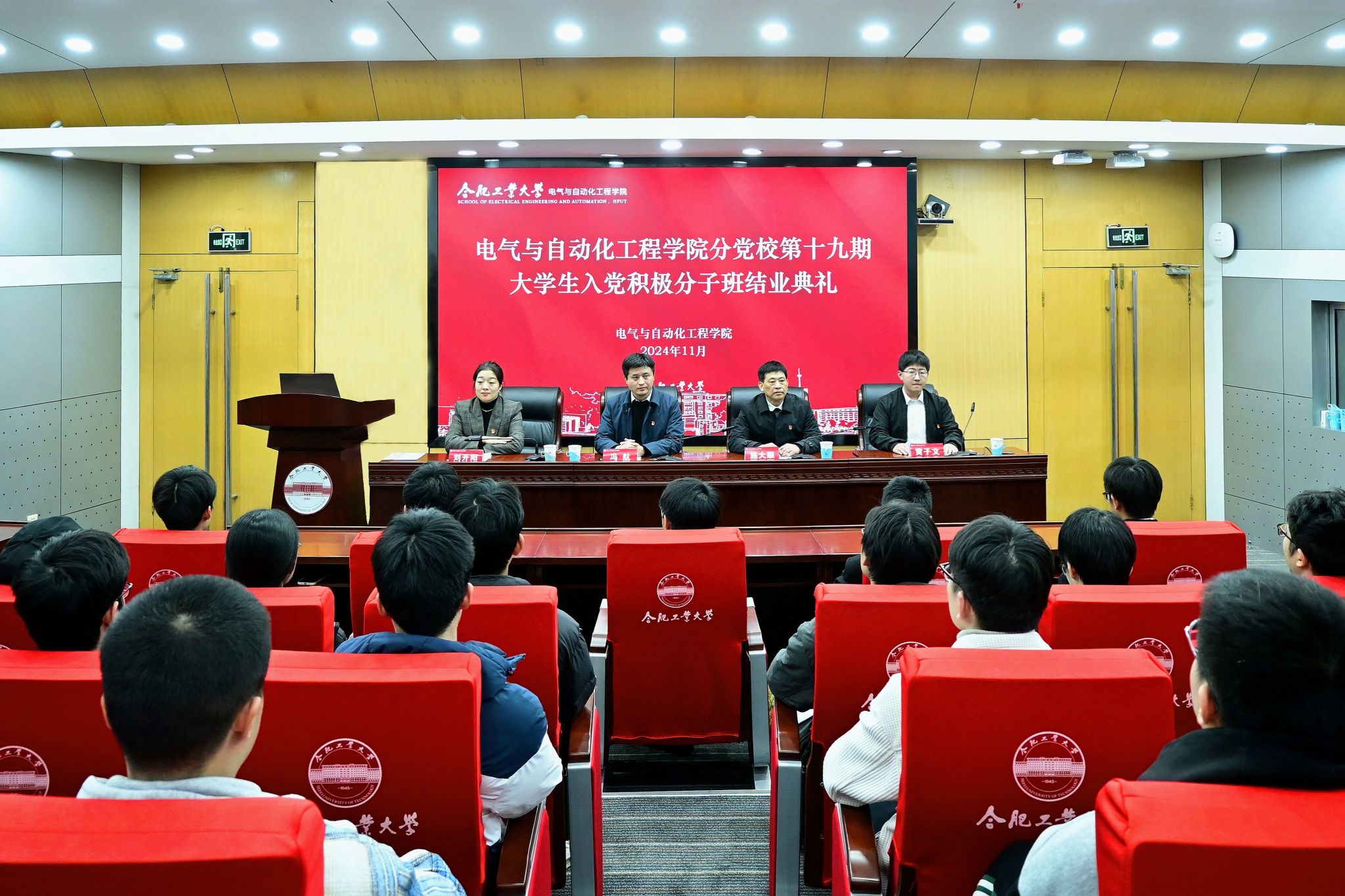 典礼在庄严的国歌中拉开序幕。刘开阳宣读了《关于批准学院分党校第十九期大学生积极分子培训班学员结业的通知》,本期培训班共计102名学员顺利结业。施大顺宣读了《关于表彰学院分党校第十九期大学生积极分子培训班“优秀学员”和“优秀班主任”的决定》,与会领导老师为朱国庆等10名优秀学员进行颁奖。电气工程专业2023级硕士研究生陈熙之作为学生代表发言,对各级党委的关心表示衷心感谢,分享了党校培训中的收获,并代表全体学员承诺,将以更加坚定的信念、更加饱满的热情、更加过硬的本领,通过实际行动为中国式现代化挺膺担当。
