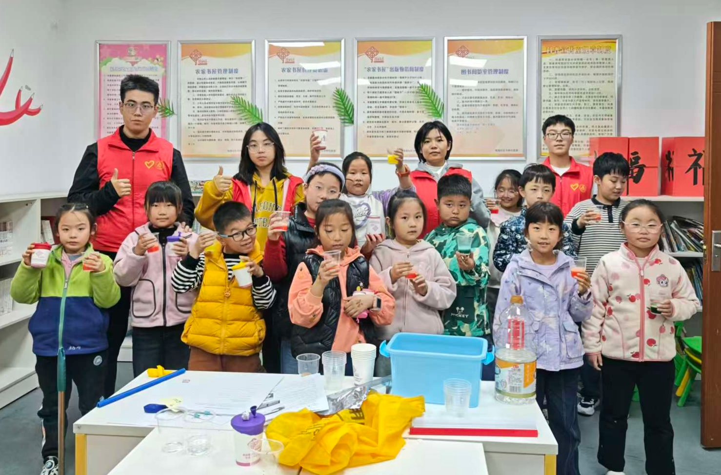 活动现场设置空气炮、会跳舞的锡纸球、熔岩灯三个趣味科学实验。空气炮实验中,志愿者提前代划纸杯孔洞保障安全,指导孩子们完成制作,通过气流冲击现象讲解压缩空气形成膨胀冲击波的原理;会跳舞的锡纸球实验里,孩子们揉捏锡纸球后,志愿者协助固定相关装置,主讲老师以摩擦带电铁棒引发锡纸球“跳动”,阐释电荷传递与相互作用知识;熔岩灯实验中,志愿者引导孩子们混合相关材料,借助化学反应产生的气泡结合灯光模拟熔岩效果,解读产气原理。系列实验让孩子们在安全操作与动手实践中,感受科学趣味、掌握基础科学知识。