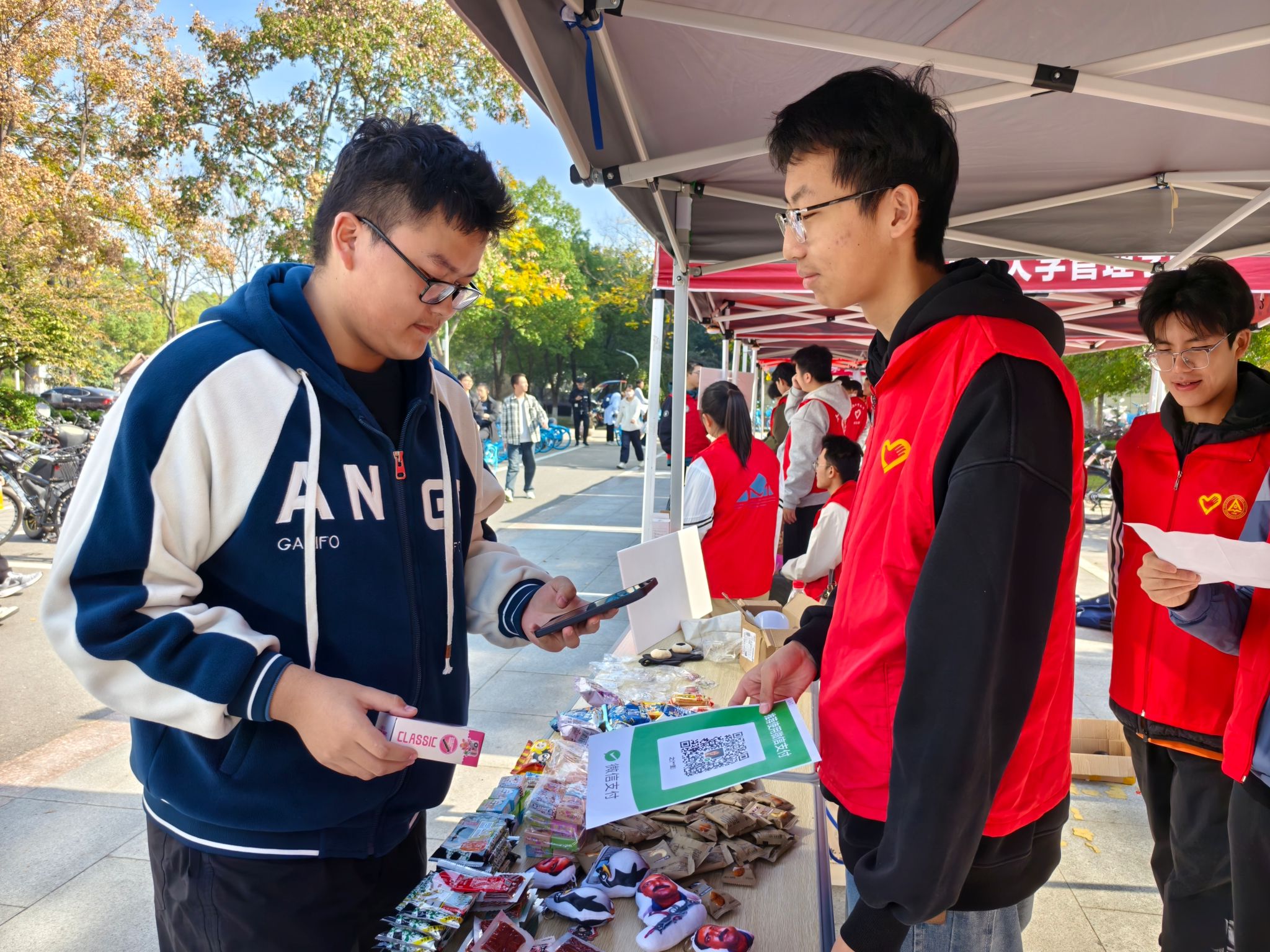 于翡翠湖校区三食堂广场开展“冬韵流转,义卖暖心”主题义卖活动。