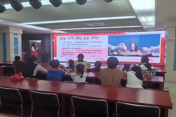 由学生党员代表组成的讲师团以分享交流、演讲的形式,围绕“二十大精神”与“中国共产主义发展历程”两个方面展开详细的介绍。主讲人刘心羽通过具体的实例讲述,让小朋友门对当今世界发展格局有更深层的认识,通过生动、形象的图片和视频资料,帮助小朋友们了解民族解放、改革、发展历程的艰辛不易,感受新时代中国取得的巨大成就。同时,讲师团还介绍了先进人物的事迹,鼓励小朋友们向先进模范看齐,以他们为榜样,自觉承担起新时代赋予青少年的使命。本次读书会课堂气氛活跃,在互动环节,小朋友们积极踊跃分享自己的心得体会。
