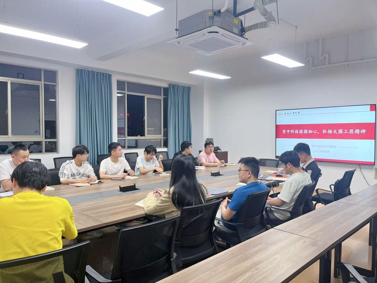 组织党校71期预备党员班学员在屯溪路校区逸夫楼1002会议室开展“坚守科技报国初心,弘扬大国工匠精神”主题观影及研讨活动。