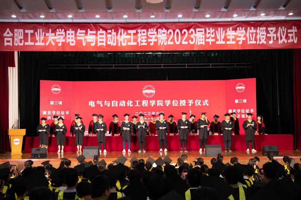 6月15日下午,电气与自动化工程学院2023届合肥校区毕业生学位授予仪式在屯溪路校区斛兵礼堂举行。校党委常委、副校长刘晓平出席仪式,学院相关负责人、学位评定委员会委员、教师代表以及2023届学士、硕士、博士学位获得者参加仪式。仪式由院党委副书记兼纪委书记李丽鹏主持。