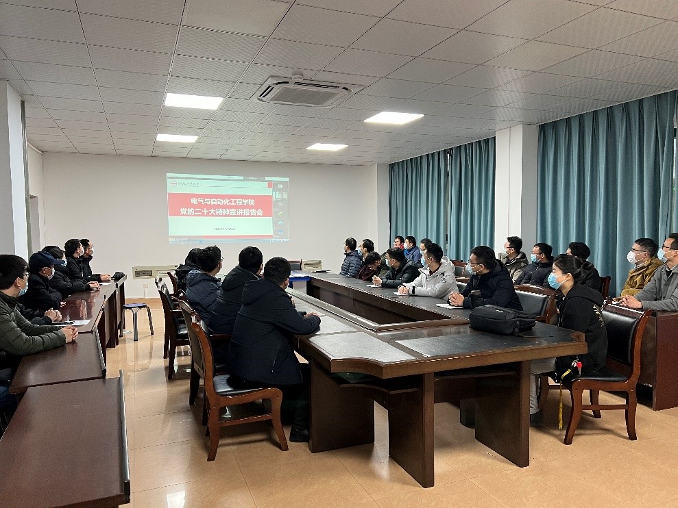 为推进学院学习宣传贯彻党的二十大精神持续走深走实,根据校党委统一部署,11月30日下午,电气与自动化工程学院在逸夫楼召开学习宣传贯彻党的二十大精神宣讲报告会,院党委书记何岳颀同志作宣讲报告,全院180余名教职工通过线上线下结合的方式参加学习。