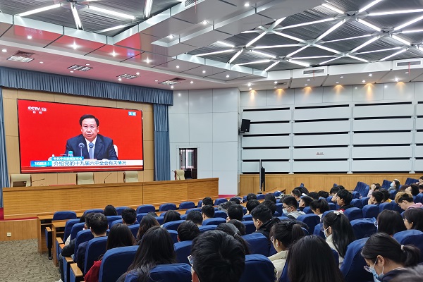11月12日上午,电气与自动化工程学院在学术会议中心大报告厅组织第66期预备党员班学员代表和全院学生党支部支委代表收听收看中共中央新闻发布会,学习领会十九届六中全会精神。