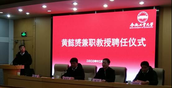 2020年12月17日,黄懿赟兼职教授聘任仪式暨学术报告会在屯溪路校区学术报告厅举行。出席本次仪式的有我校党委副书记陈刚同志、电气学院党委书记何岳颀同志。电气学院副院长黄海宏同志主持会议。