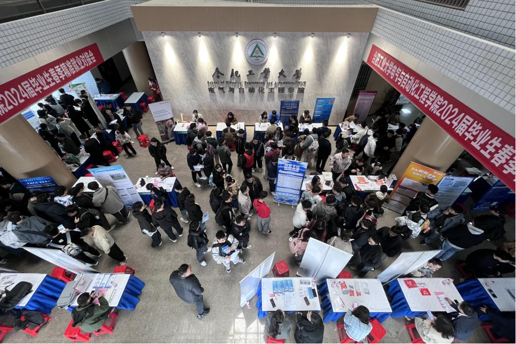 双选会期间,逸夫科技楼二楼大厅平台人潮涌动,供需双方热情满满。各大知名企业齐聚,共甄选出38家知名企业参至现场,根据电气、自动化、机器人工程等专业设置特点,精心为我校毕业生筛选匹配,共提供1000余个就业岗位,涵盖所有学历层次。各年级400余学生分时段进入招聘现场,主动上前询问、积极投递简历、开展面试交流,用人单位耐心介绍岗位需求、发展前景、晋升渠道,现场交流激烈,投递简历累计300余人次,40余名学生与用人单位建立初步签约意向。