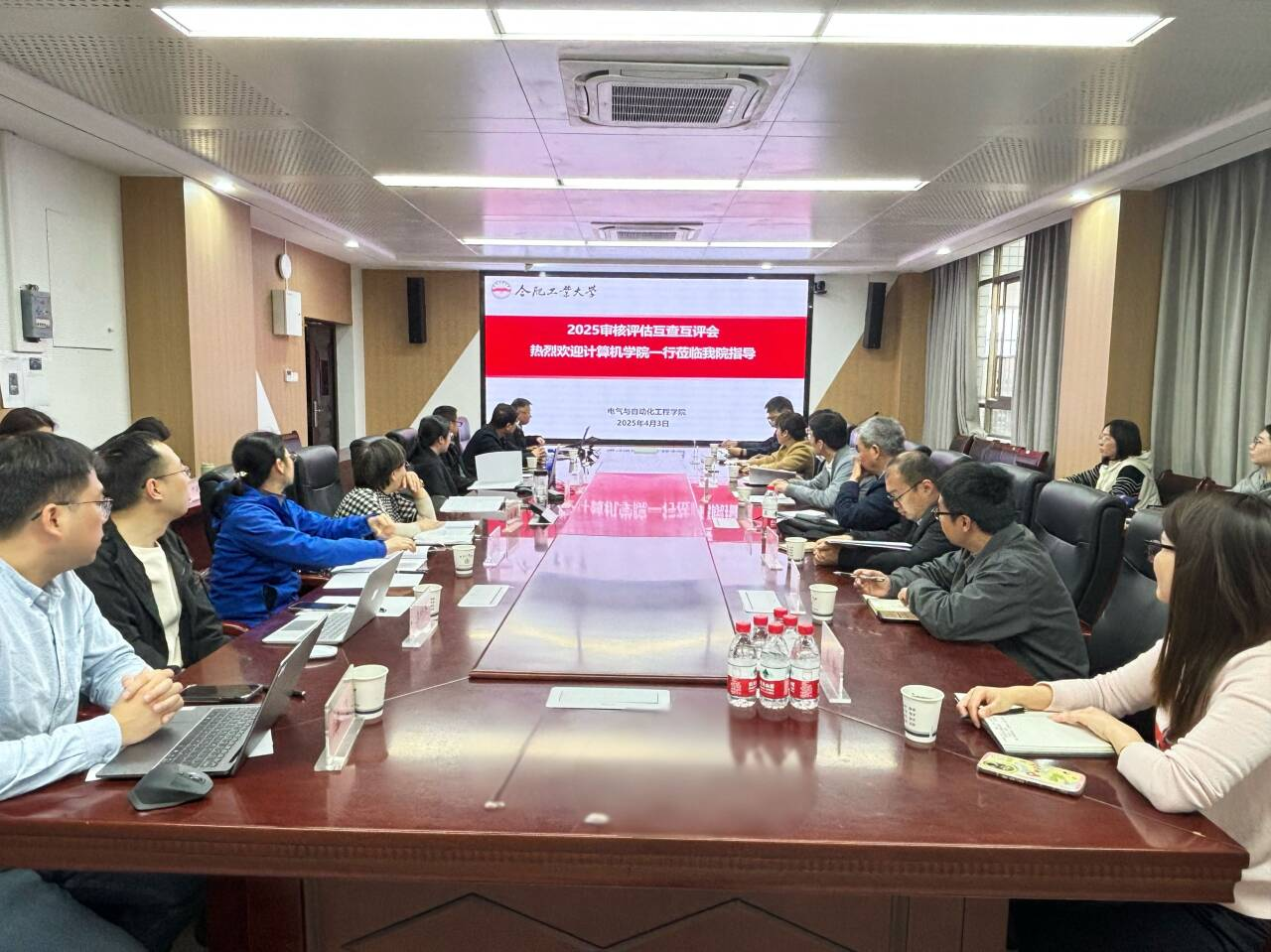 根据学校开展本科教育教学审核评估互查互评的工作部署,为扎实推进我院本科教育教学工作的展开,4月3日下午,计算机学院副院长夏娜一行来我院开展教育教学审核评估互查互评工作。互查互评工作会议由副院长黄海宏主持,学院各专业负责人、各系主任等参会。