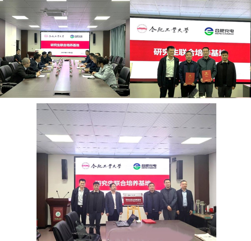 11月4日上午,合肥工业大学—合肥市电动汽车充电设施投资运营有限公司研究生联合培养基地签约仪式暨交流座谈在逸夫楼1004举行。合肥市电动汽车充电设施投资运营有限公司董事长张建、总经理孔亦融、副总经理陈晶晶、资产部部长蒋文、党群部主管刘斐斐、合肥工业大学研究生院副院长/卓越工程师学院副院长黄飞、合肥工业大学电气与自动化工程学院党委书记冯航、副院长吴红斌、电力系统教研室主任杨熙、副教授马英浩一同出席本次活动。
