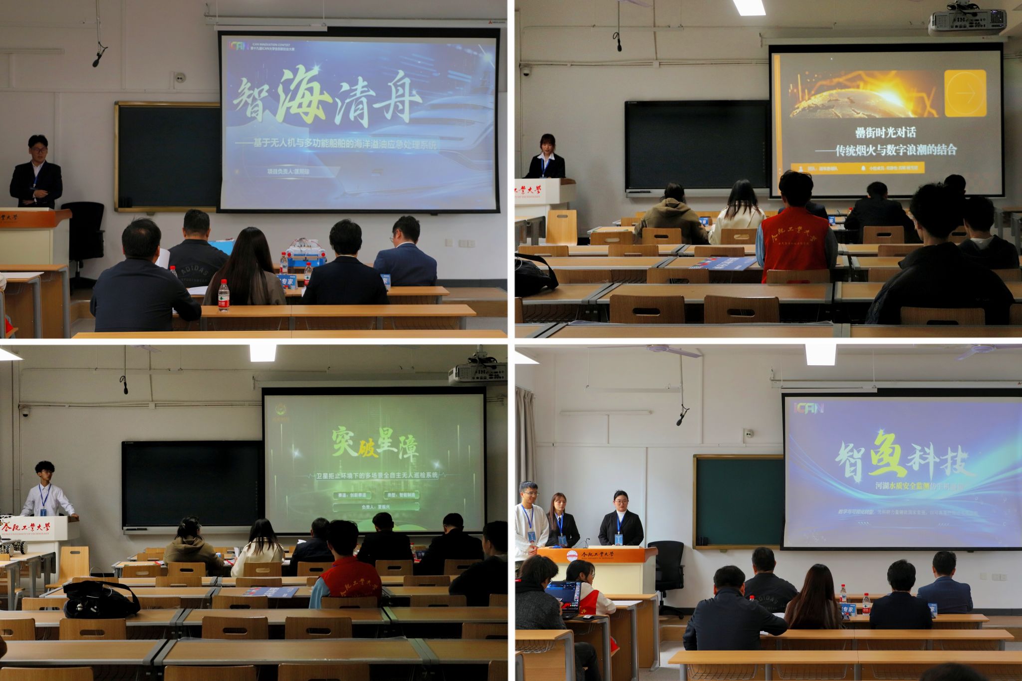 选拔赛邀请了来自安徽科技报、毕孚自动化设备贸易(上海)有限公司等省内外单位的25位专家担任评委。专家们认真听取各参赛队伍的路演介绍和答辩,并对参赛作品改进提出了意见建议。经综合评议,最终决出省级创新与创业赛道一等奖47项、二等奖117项、三等奖207项。获得省级一等奖的参赛队伍将代表安徽赛区角逐全国总决赛。