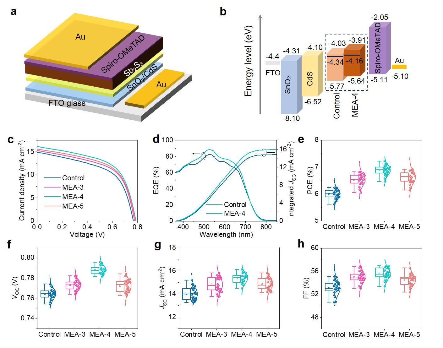 图1 AM1.5G标准光照下硫化锑薄膜太阳能电池性能