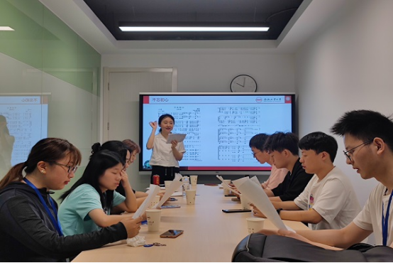 首先,学院美育指导老师左能结合新中国成立至今的中国音乐发展历程,为同学们介绍了部分脍炙人口的经典爱国歌曲。接着,她指导大家进行发声练习,并讲解了旋律和节奏等基础乐理知识,同时带领大家掌握了简谱视唱、装饰音演唱等技能。接着,她将同学们分为两个声部,教大家演唱了歌曲《不忘初心》,同学们用歌声尽情表达了对党和祖国的热爱之情。歌声悠扬,歌词暖心,一句“不忘初心,继续前进,万水千山,最美中国道路”,让大家一同重温了革命先辈们艰苦卓绝的峥嵘岁月,抒发了对祖国和人民的浓浓深情。
