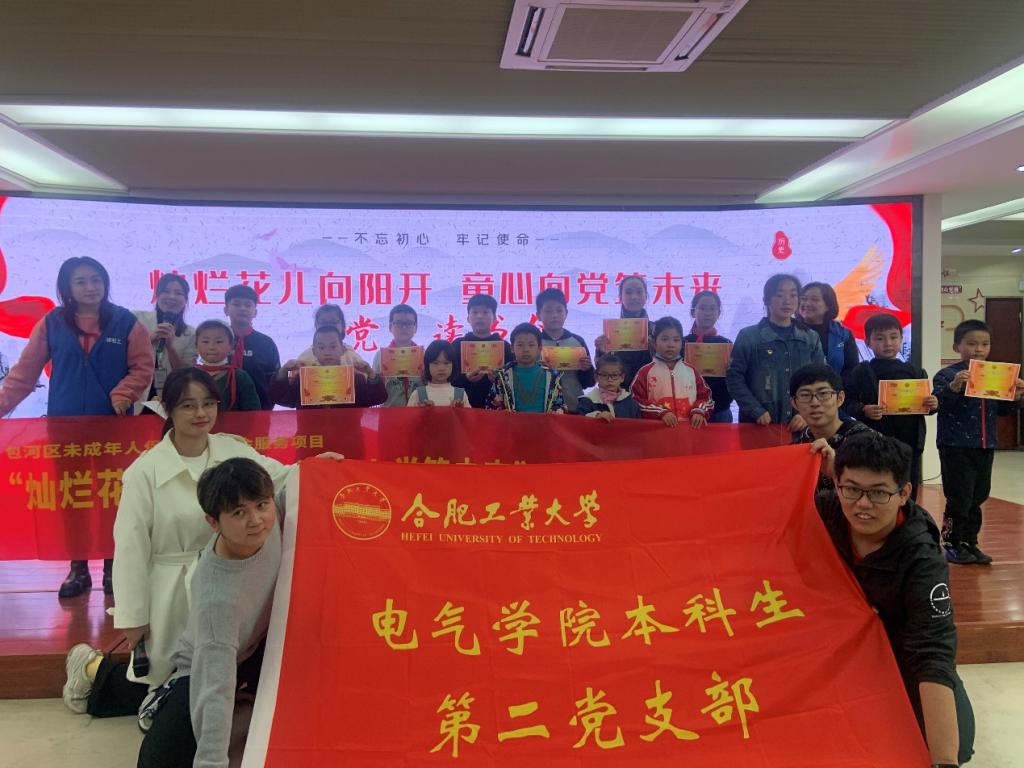 正值中国共产党建党百年之际,为进一步贯彻落实好党史学习教育任务,努力做到学史明理、学史增信、学史崇德、学史力行,10月22日下午,电气与自动化工程学院本科生第二党支部赴滨湖世纪社区服务中心开展“灿烂花儿向阳开,童心向党筑未来”读书会主题党日活动,以学党史,悟思想为核心,与小朋友们一道学习党的历史故事。