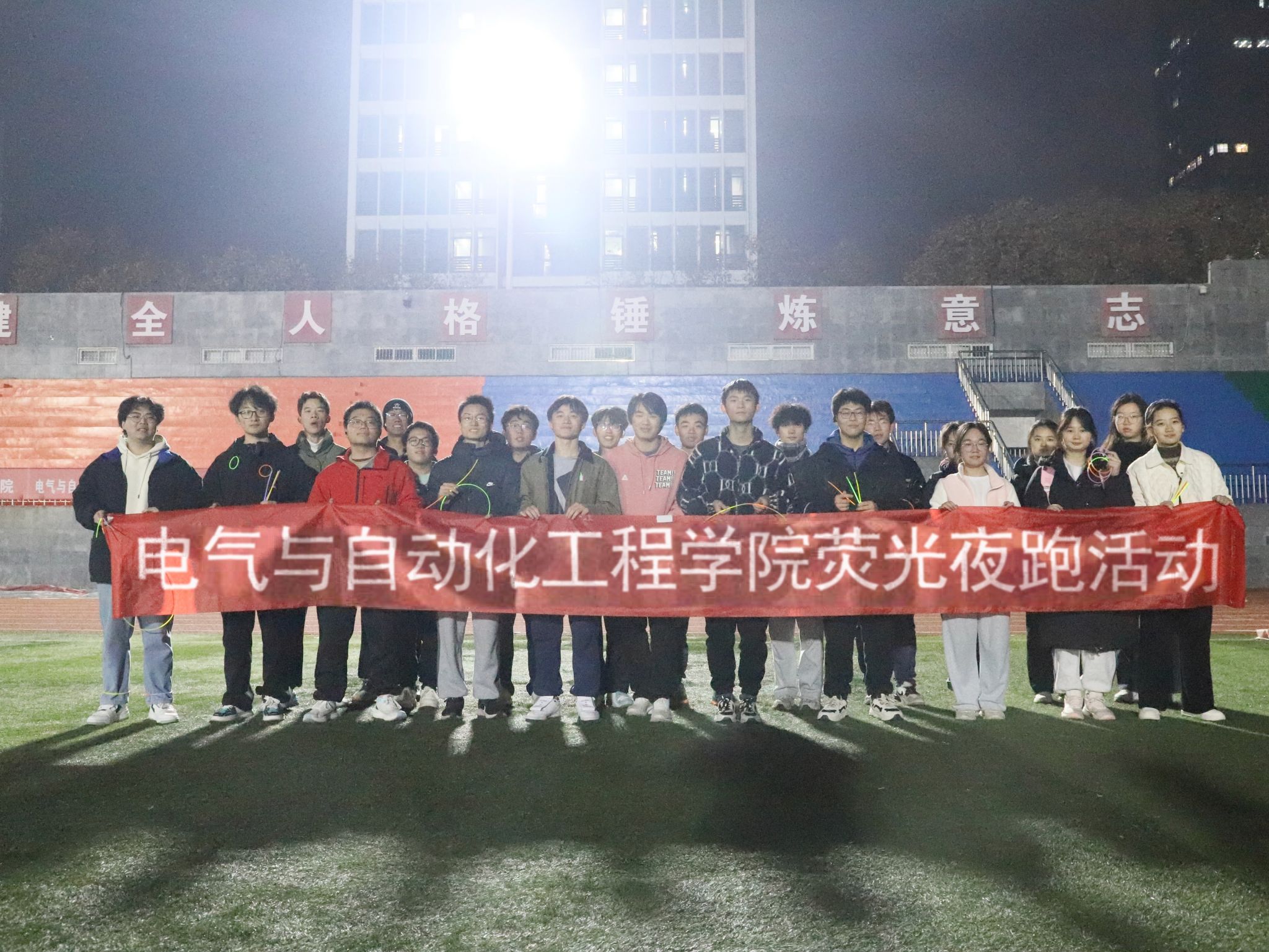 于屯溪路校区西操场开展“荧光闪耀,脚步不停”主题夜跑活动。