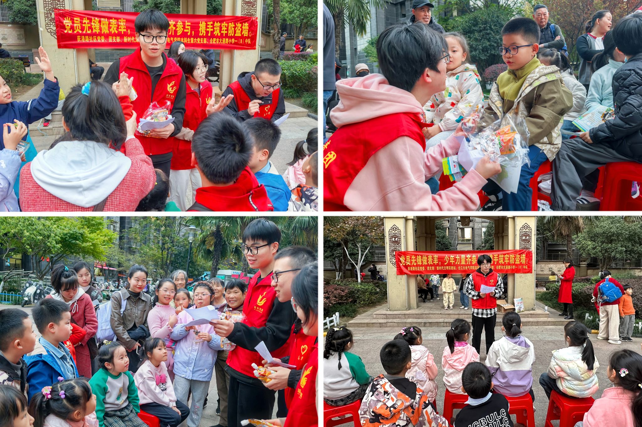 11月12日,电气与自动化工程学院赴瑶海区和平路街道荻港路社区开展“党员先锋做表率,少年力量齐参与,携手筑牢防盗墙”主题活动。学院本科生第六党支部师生代表、社区相关负责同志、大通路小学学子、社区“红色小管家”等参加。