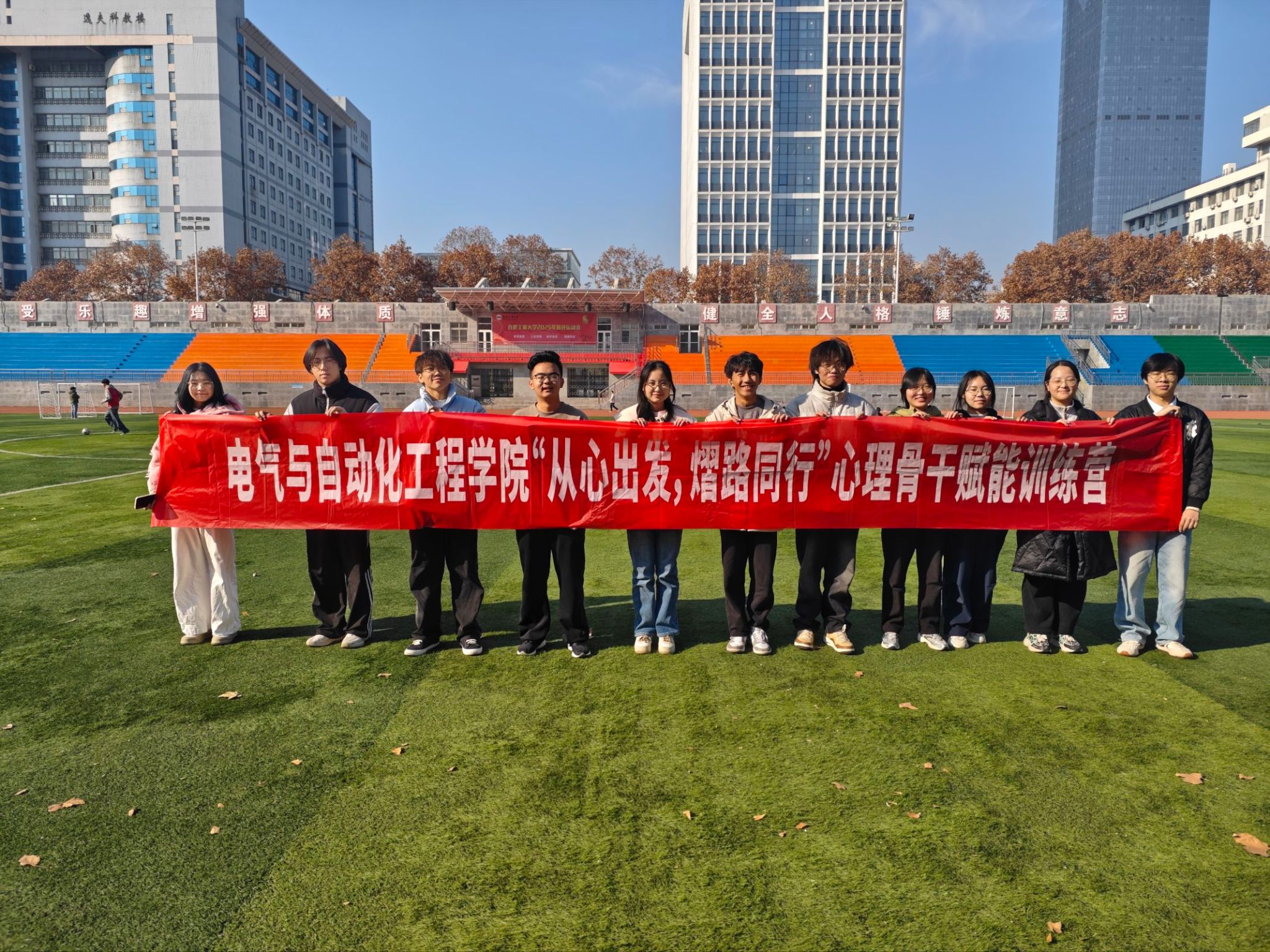 为提升心理骨干团队协作与心理支持能力,凝聚学院朋辈心理支持队伍合力。12月6日上午,电气与自动化工程学院在屯溪路校区西操场组织开展心理骨干素质拓展活动,学院12名高年级心理委员积极参与。