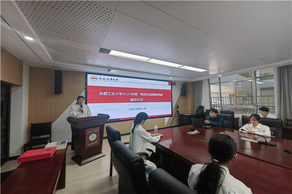 11月1日,合肥工业大学第九届“特高压电网学金”颁奖仪式在屯溪路校区逸夫楼1009会议室举行。国家电网安徽省电力有限公司党委宣传部主任陈浴新、品牌处处长何宁,电气与自动化工程学院院长向念文、党委书记何岳颀、党委副书记兼纪委书记李丽鹏参加仪式。