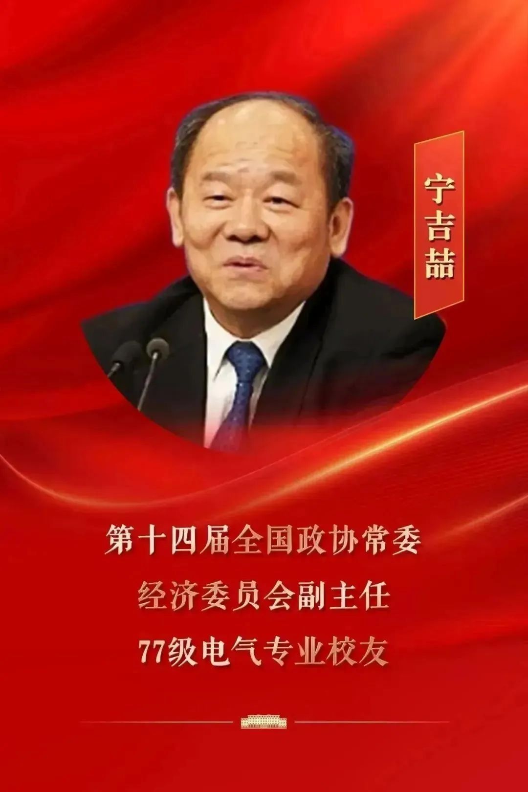 宁吉喆,男,汉族,1956年12月出生,1982年毕业于合肥工业大学电机专业。现任中国人民政治协商会议第十四届全国委员会常务委员、经济委员会副主任,中国统计学会会长(兼),曾任全国政协经济委员会副主任,国家发展改革委党组成员、副主任,国家统计局局长、党组书记,货币政策委员会委员,中国共产党第十九届中央委员会候补委员,国务院研究室党组书记、主任。